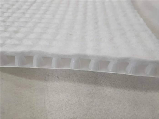 虹吸排水板是由高密度聚乙烯純白原料,在熔融狀態(tài)下經(jīng)真空吸塑一次成型制成,制造出單向的連續(xù)密閉殼體凸起的板狀材料,形成一種膜、殼連接,具有獨立排水空間和一定支撐剛度的防護排水卷材。高分子防護排水異型片經(jīng)專用機型將長效雙抗土工布粘接在凸臺支點上,具有粘合度強、抗剝離度強度高的特點,是國際通用的排水材