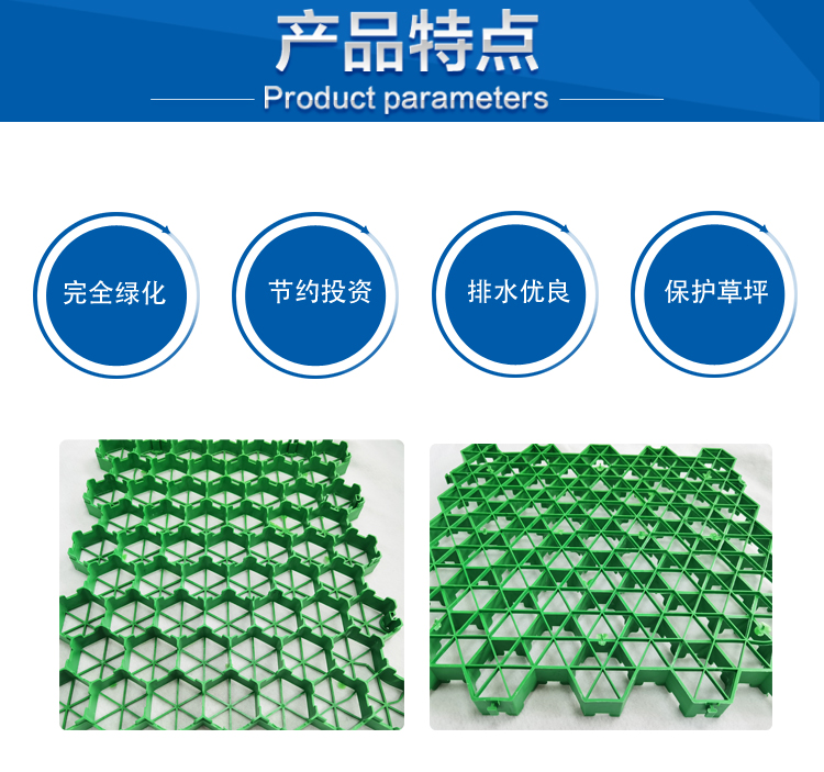 消防通道植草格易安裝易植草易成活,100%綠化率替代水泥產(chǎn)品,用于公園草坪,小區(qū),體育館,停車場,停車位,人行道綠化,消防通道等,還可用于護(hù)坡(比如高速公路兩邊的山體護(hù)坡之類的既環(huán)保又經(jīng)濟(jì)。 消防通道植草格應(yīng)用廣泛,例如停車場、樓宇消防通道、人行道等,現(xiàn)在大都是水泥路面,占用了小區(qū)大量綠地,很不美觀;也有采用混凝土植草磚來綠化停車位的但其綠化率不到30%,且混凝土植草磚在車輪碾壓下很容易破碎,難以達(dá)到美化環(huán)境的初衷。